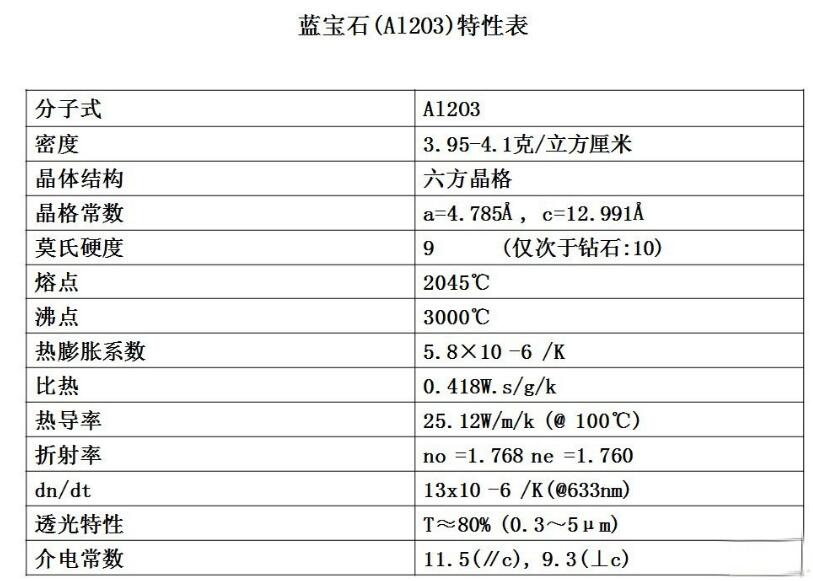 藍寶石的組成為氧化鋁(Al2O3),是由三個氧原子和兩個鋁原子以共價鍵型式結合而成,其晶體結構為六方晶格結構。它常被應用的切面有A-Plane,C-Plane及R-Plane.由于藍寶石的光學穿透帶很寬,從近紫外光(190nm)到中紅外線都具有很好的透光性.因此被大量用在光學元件、紅外裝置、高強度鐳射鏡片材料及光罩材料上,它具有高聲速、耐高溫、抗腐蝕、高硬度、高透光性、熔點高(2045℃)等特點,它是一種相當難加工的材料,因此常被用來作為光電元件的材料。目前超高亮度白/藍光LED的品質取決于氮化鎵磊晶(GaN)的材料品質,而氮化鎵磊晶品質則與所使用的藍寶石基板表面加工品質息息相關,藍寶石(單晶Al2O3 )C面與Ⅲ-Ⅴ和Ⅱ-Ⅵ族沉積薄膜之間的晶格常數失配率小,同時符合GaN磊晶制程中耐高溫的要求,使得藍寶石芯片成為制作白/藍/綠光LED的關鍵材料。