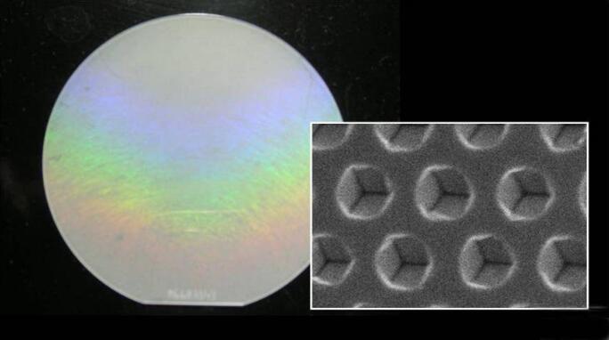 以成長(Growth)或蝕刻(Etching)的方式,在藍寶石基板上設計制作出納米級特定規則的微結構圖案藉以控制LED之輸出光形式,并可同時減少生長在藍寶石基板上GaN之間的差排缺陷,改善磊晶質量,并提升LED內部量子效率、增加光萃取效率。